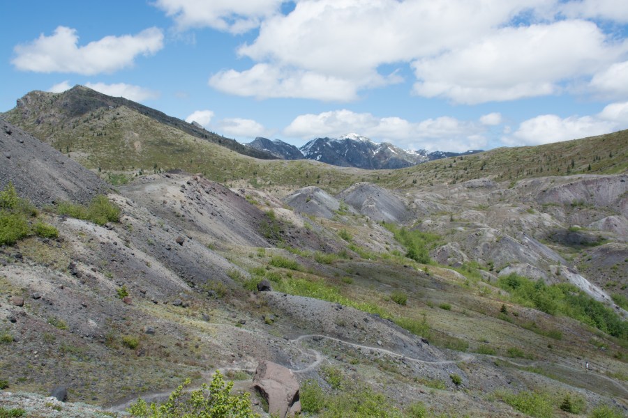 Hiking across the landslide debris that carried up and over Coldwater Ridge