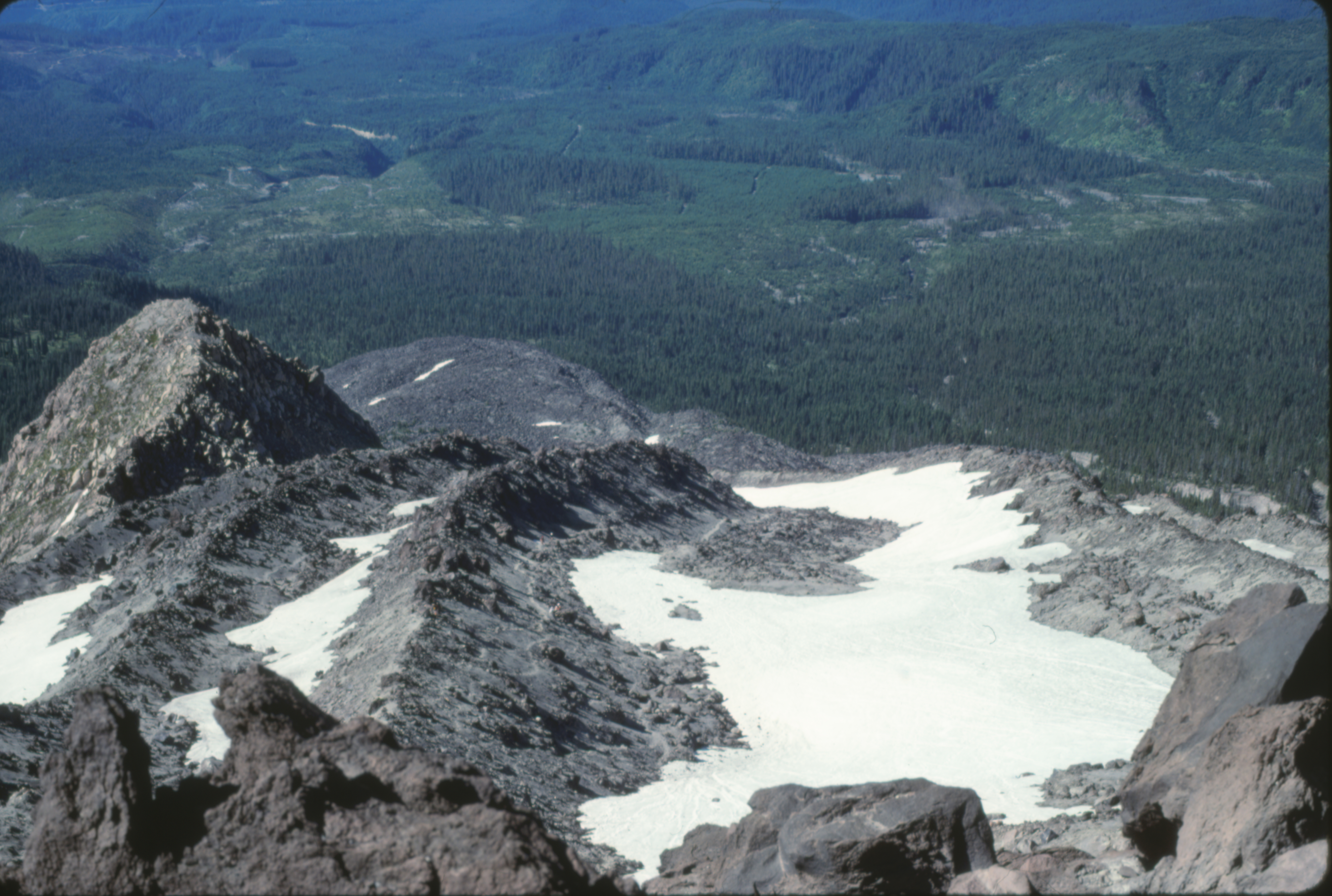 Looking downslope and the Monitor Ridge lava flow, July 8, 1988