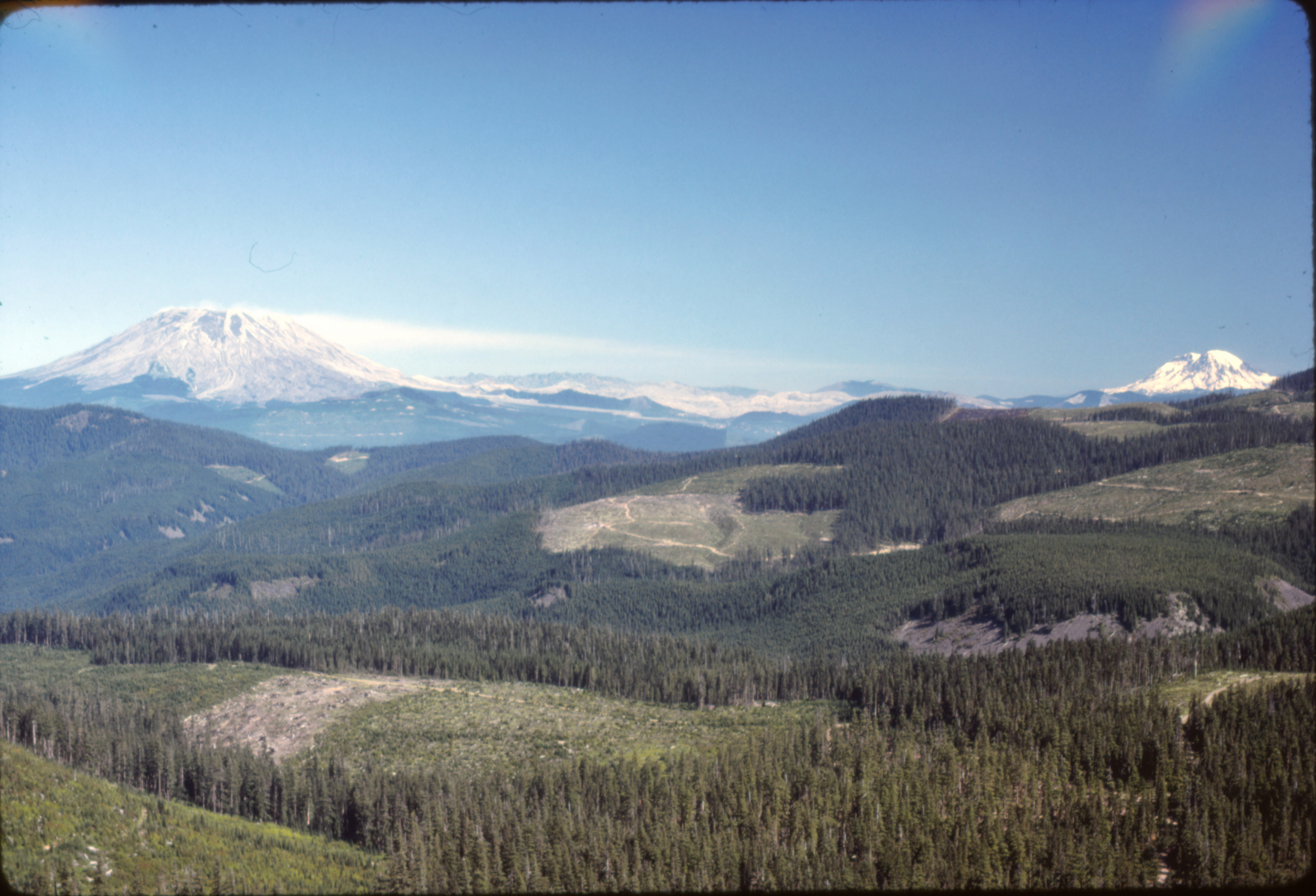 Mt. St. Helens, Mt. Rainier on the right, August 1981